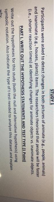 Solved Study 1 Participants Were Asked To Detect Changes In Chegg Com